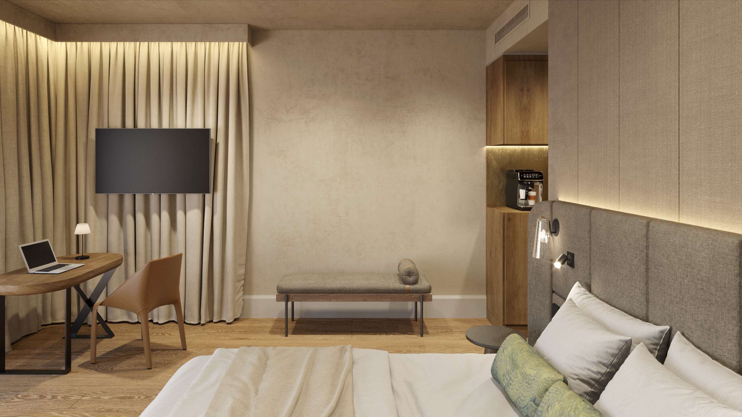 Im Doppelzimmer Deluxe mit Balkon oder Terrasse genießen Sie modernes Wohnen in elegantem Ambiente. Der Balkon erweitert den Wohnraum nach draußen und bietet einen wunderbaren Platz, um die Aussicht und frische Luft zu genießen.